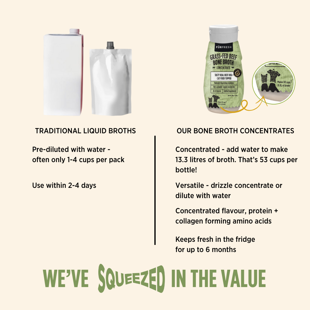 And, there's a whole lot more for your furmily to love with one bottle making 56 cups, or 14L of broth when rehydrated with water. We think that's pawsome value!